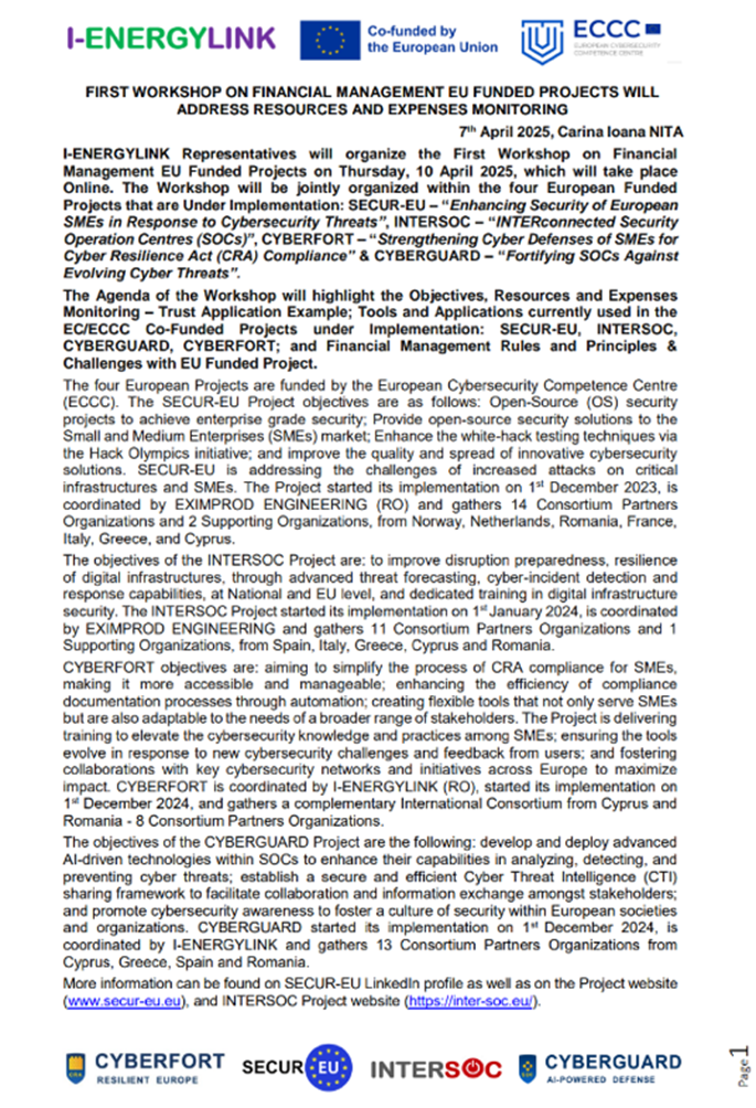 CYBERGUARD - Fortifying SOCs Against Evolving Cyber Threats - 27EUD/2025 (PN-IV-P8-8.2-EUD-2025-0053)